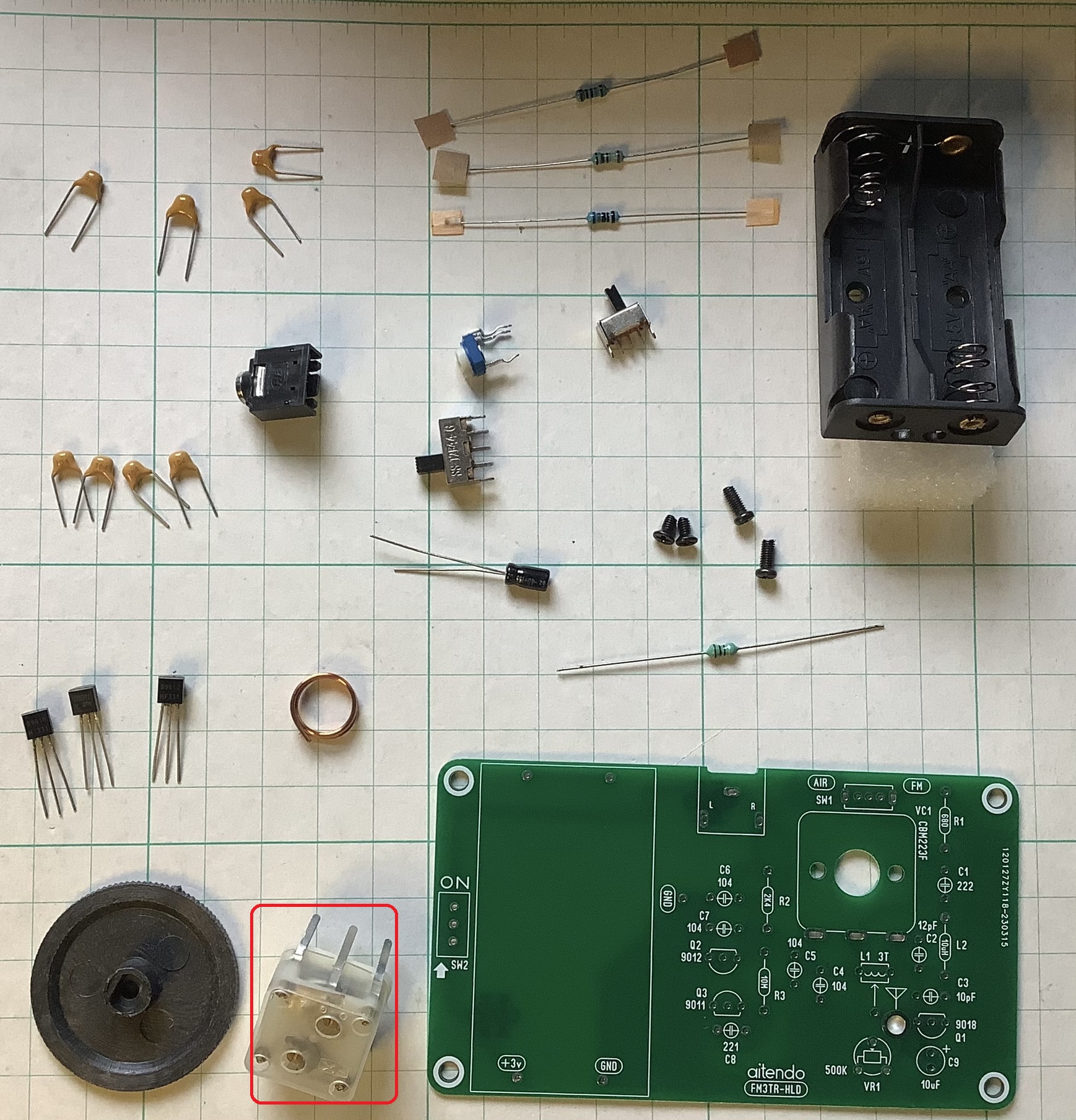 - 回路図ではトランジスタS9011のピン配列がECBとなっているが、現物はEBC配列。基板パターンもEBC配列なのでこれは問題なし