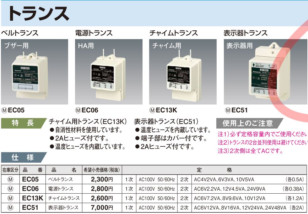 小学生位の時に手に入れたのは確かに「ベルトランス」だったと思う。Panasonicのカタログを見ると幾つかの種類が見つかった。遠い記憶で4V-0-6Vだったハズ。今回入手したのは8V端子が付いて取り出せる電流も多いトランスで商品名も異なっていた。しかしこれらの商品は2020年に生産終了となっている。